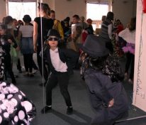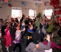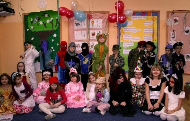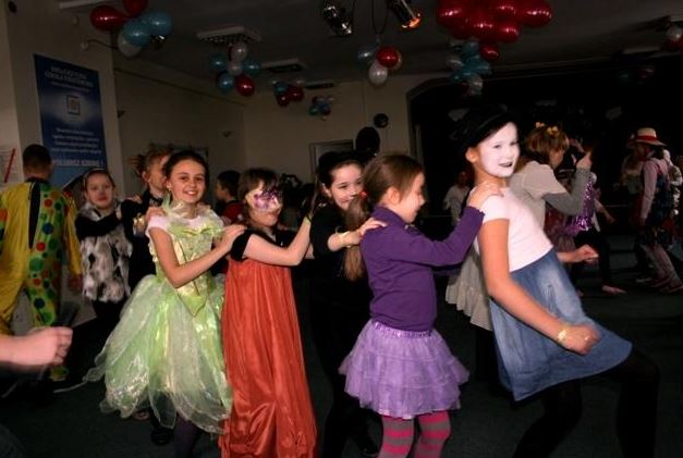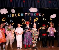 Do szkoły przybyli bohaterowie z różnych bajek. Naszymi gośćmi byli uczniowie z Ośrodka Szkolno-Wychowawczego Nr 6 dla dzieci słabowidzących. Zabawa była wyśmienita! W miłej i radosnej atmosferze dzieci brały udział w kolejnych konkursach i zabawach. Tańczyły klaszcząc nad głowami, a nawet tańcząc na kolanie. Udały się także w podróż po innych krajach, tańcząc austriackiego walca, francuskiego kankana, grecki taniec Zorba, polskiego krakowiaka, rosyjskiego kazaczoka, a także wiele innych pląsów. Wszyscy oczekiwali jednak na „gwóźdź programu” – wybór mistrza i mistrzyni tańca. Na scenie kolejno prezentowali swoje taneczne umiejętności królowie, królewny, policjanci, duchy, zwierzęta i inni bohaterowie. Wszyscy wypadli znakomicie, więc wybór mistrzów był dla jury niezwykle trudny. Po długich obradach mistrzynią tańca została Julia Gurazda (klasa II), mistrzem tańca Mateusz Młynarczyk (klasa IIIa), zaś wicemistrzem – Adaś Wojciechowski, a wyróżnienia otrzymały dzieci z Ośrodka Szkolno – Wychowawczego. Uczestnicy balu otrzymali na pamiątkę duże balony w kształcie serc. Ze smutkiem w oczach opuszczaliśmy salę balową, po ponad dwugodzinnej, wspaniałej zabawie i już myśleliśmy nad przyszłorocznym strojem karnawałowym… mgr Magdalena Banasiak