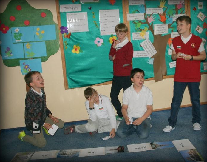 Zadania przygotowane dla uczestników zabawy dostosowane były poziomem trudności do wieku uczniów poszczególnych klas, a nad ich poprawnym wykonaniem czuwali starsi koledzy należący do harcerstwa.  Najmłodsi musieli m.in. rozpoznać flagi wybranych krajów z Europy, przyporządkować fotografie znanych postaci z państw europejskich do pełnionych przez nie funkcji czy też wskazać na podstawie krótkiego nagrania, w jakim języku została wypowiedziana dana kwestia. Z kolei do zadań starszych uczniów należało np. zaznaczenie na interaktywnej mapie lokalizacji wszystkich państw UE czy też rozpoznanie potraw charakterystycznych dla poszczególnych regionów. Wszyscy bez podziału na wiek wykonali również prace plastyczne poświęcone jednemu  z krajów, a także przygotowali tradycyjne dla nich dania, które z radością zostały skonsumowane zaraz po uzyskaniu zgody od wychowawców 😉