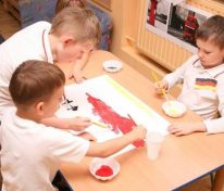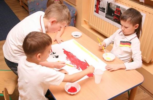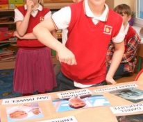 Warsztaty europejskie to jednak nie tylko intelektualne zmagania, ale i zadania artystyczne – dzieci malowały więc tematyczne plakaty poświęcone konkretnym państwom, a także ochoczo śpiewały „Odę do radości”. Wspólnie wykonany hymn Unii Europejskiej zakończył zresztą ten aktywny dzień, który jeszcze długo będzie wspominany przez najmłodszych uczniów naszej podstawówki.