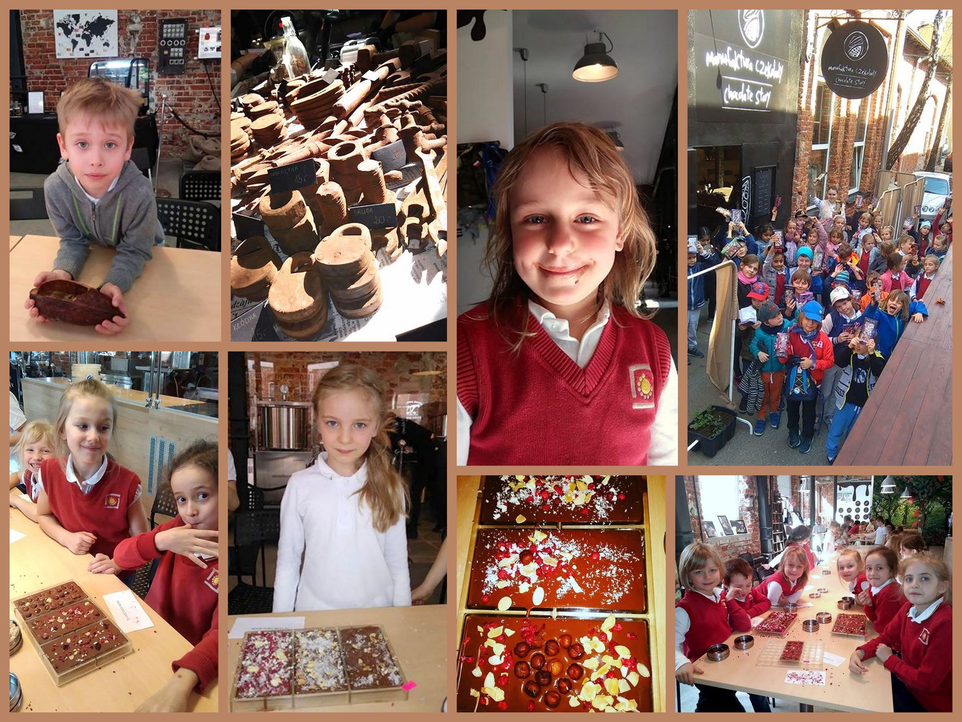 Klasy 0-2 uczestniczyły w warsztatach w Manufakturze Czekolady Chocolate Story. Dzieci poznały proces powstawania popularnej tabliczki, mogły spróbować jak smakuje ziarno kakao i napić się gorącej czekolady. Najciekawszym punktem warsztatów było własnoręczne dekorowanie i pakowanie tabliczki czekolady, którą każdy z uczestników mógł zabrać do domu.