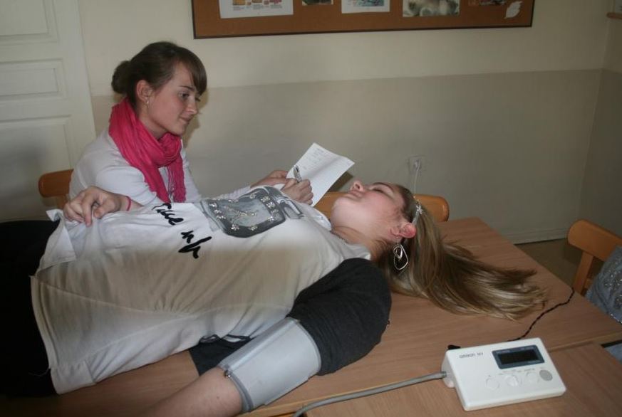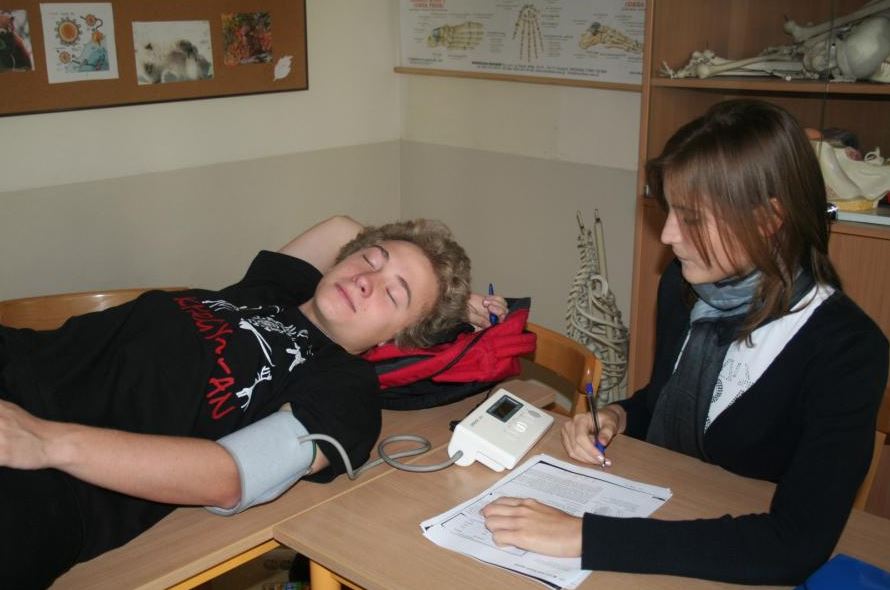 Uczniowie klas IB mają możliwość eksperymentowania na własnych organizmach, dzięki czemu łatwiej przyswajają materiał. Jednocześnie, zajęcia przysparzają im wiele radości (wystarczy spojrzeć na ich miny 🙂 ).
