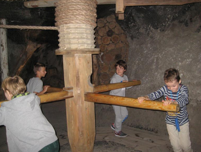 Już pierwszego dnia, w piątek, wszyscy mieliśmy doskonały humor, ponieważ nie musieliśmy iść do szkoły! Wyruszyliśmy rano. W połowie drogi zatrzymaliśmy się, żeby zwiedzić kopalnię soli w Wieliczce. Z pewnością każdemu z uczestników podobały się zabawy zaproponowane przez ducha kopalni – Skarbka. Szukaliśmy m.in. pierścienia świętej Kingi – patronki kopalni (w jej rolę wcieliła się Ewa Możyszek). Dzięki tej wyprawie dowiedzieliśmy się też, jak ciężka jest praca górników. Wieczorem, mimo meczącej drogi, wszyscy byliśmy podekscytowani i długo nie mogliśmy zasnąć.